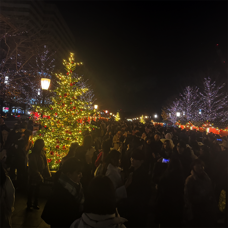 クリスマスマーケットみたいのがやっていて多くの人達で賑わっていました